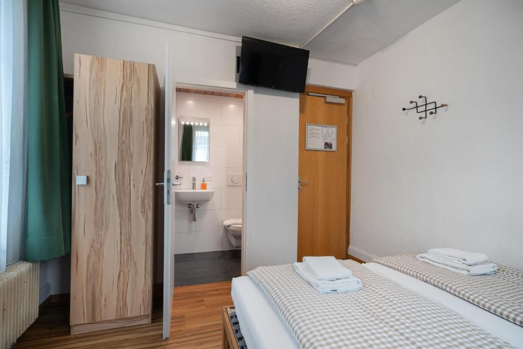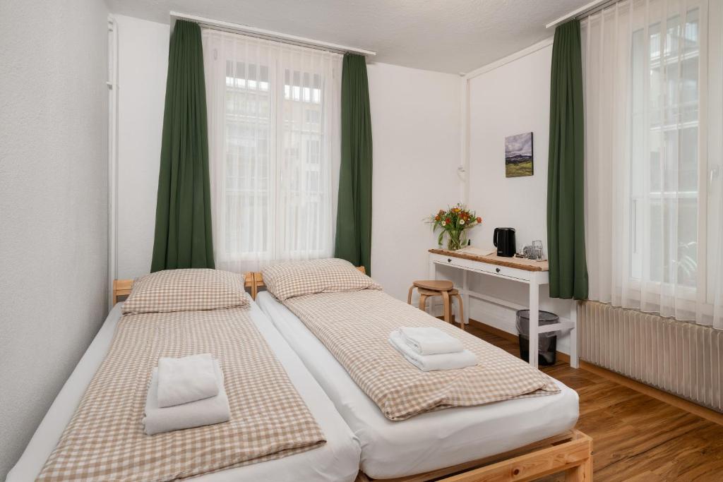 The apartment is just few minutes walk from the Interlaken West train station. There's nearby Migros. The room is not well-cleaned. We saw a lot of women's hair in the bed and some areas of the room (we are both men). You need to pay City Tax after check out. Next time we will book the room with kitchen so that we can cook. Food in Switzerland is very costly.