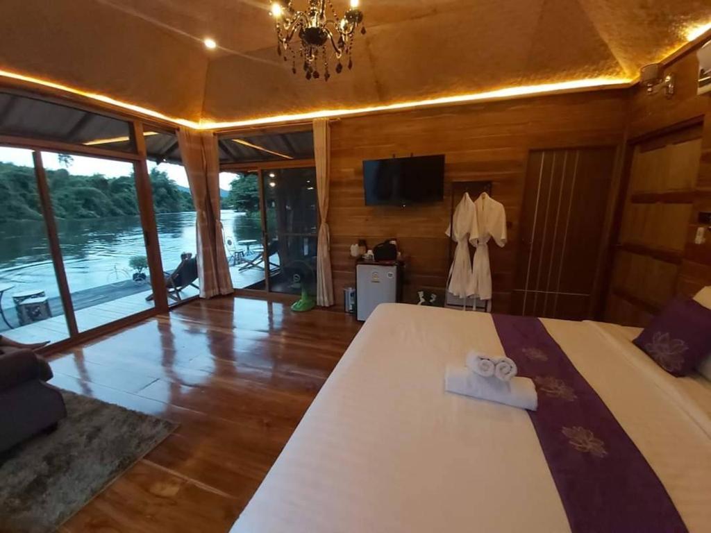 Discover a range of exquisite room offerings at Kodaun River Kwai Resort in Kanchanaburi, Thailand. From the spacious Deluxe River View Raft to the cozy Family Villa, there is a perfect accommodation option for every traveler. The Luxury Double room provides ample space with a plush Sofa Bed and a Super King Bed, ensuring a restful night's sleep. For those seeking a more lavish experience, the Meeting Room King Suite offers six King Beds, ideal for large groups or families. Indulge in the tranquility of the Raft Room or the intimate charm of the Room On Raft, both providing a unique floating experience. The Suite River View boasts breathtaking views of the river, while the Villa offers a cozy retreat with a Queen Bed. By booking these exceptional rooms on Agoda, you can enjoy the best prices and a hassle-free experience, making your stay at Kodaun River Kwai Resort truly unforgettable.
