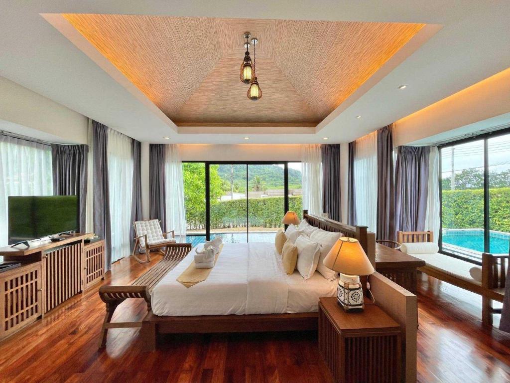At Ozone Villa Phuket, guests are invited to indulge in a range of beautifully designed accommodations tailored to provide the ultimate comfort and relaxation during their stay. The Superior Pool Villa, spanning an impressive 272 square meters, features two single beds, perfect for friends or family traveling together. For those seeking a bit more space, the 3 Bedroom - Premium option also covers 272 square meters, offering two single beds and a cozy double bed, ensuring everyone has their own sanctuary to retreat to after a day of exploration. The Deluxe Pool Villa mirrors this generous size, providing a tranquil environment with two single beds, ideal for unwinding in style.