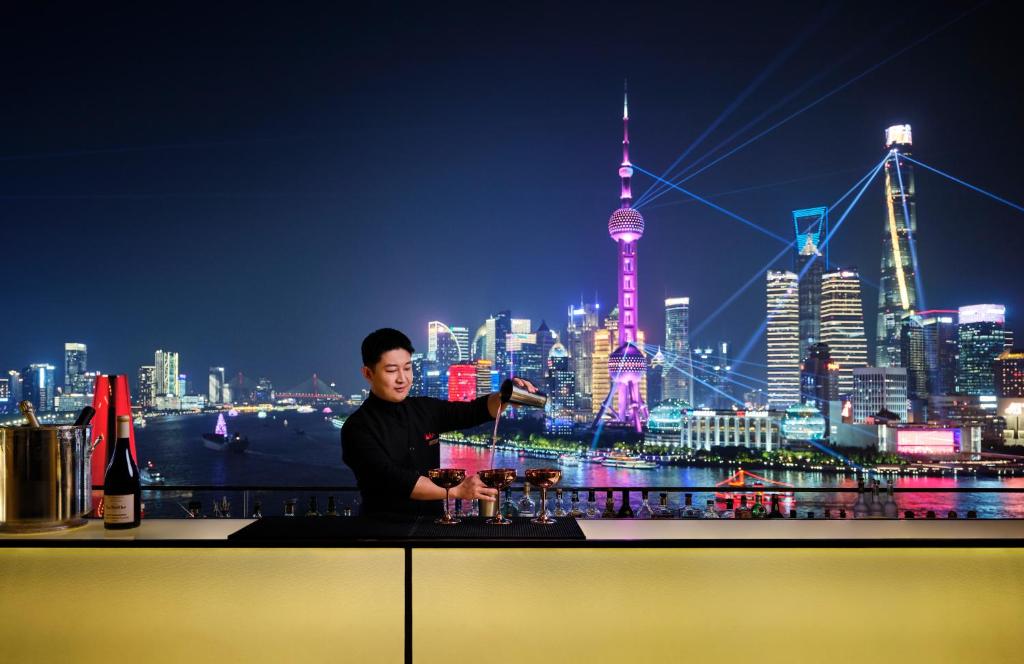 After an invigorating workout or swim, head to the poolside bar to indulge in a refreshing drink or a light snack. With a variety of beverages and bites on offer, guests can replenish their energy levels while basking in the sun and enjoying the stunning views of Shanghai's skyline.