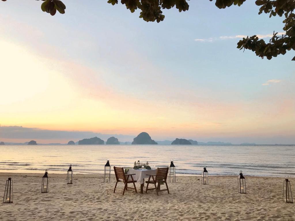 Located in the stunning Krabi province of Thailand, Tup Kaek Sunset Beach Resort (SHA Extra Plus) offers a plethora of dining options within close proximity. Whether you're in the mood for authentic Thai cuisine or international flavors, you'll find an array of restaurants to satisfy your cravings. Just a short distance away, you can visit Lae Lay for delicious seafood dishes and breathtaking ocean views. If you're looking for a unique dining experience, head to Din Dang Doi, where you can enjoy a meal in a treehouse surrounded by lush greenery. For a touch of luxury, Chomtawan Bar at Phulay Bay, a Ritz-Carlton Reserve, offers exquisite cocktails and stunning sunset vistas. Chom Talay Beach Bar and Restaurant is perfect for a casual beachfront meal, while The Arundina Restaurant serves up delectable Thai and international cuisine in an elegant setting. Plai Fah is a great choice for those seeking authentic Thai flavors, and Tubkaek Seafood is known for its fresh seafood dishes. If you're in the mood for Italian cuisine, Di Mare Italian Restaurant is sure to impress. For a taste of traditional Thai dishes, Saffron at Banyan Tree Krabi is a must-visit. And if you're looking for a cozy and homely atmosphere, Mama Kitchen @Krabi Home Resort is the place to be. With such a diverse range of dining options, you'll never run out of delicious choices during your stay at Tup Kaek Sunset Beach Resort.